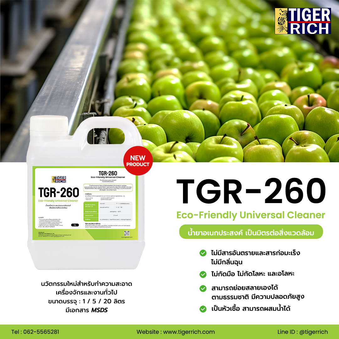 คุณสมบัติ เป็นหัวเชื้อน้ำยาเข้มข้นผสมน้ำได้ไม่เกิน 10 เท่า ทำความสะอาดพื้นผิวทุกชนิด แต่อายุงานจะสั้นกว่า TGR-240 (A)